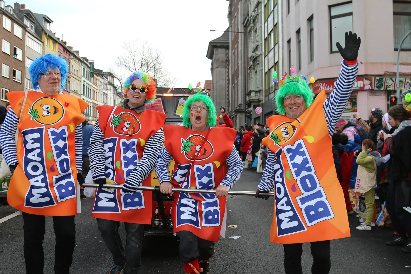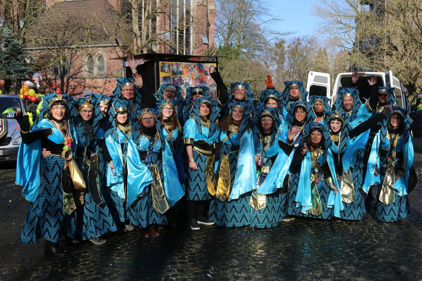 Wir sind eine private Fußtruppe und gehen seit Jahrzehnten im Aachener Rosenmontagszug mit. Unsere Kostüme wechseln öfter, leckere Kamelle und reichlich Karnevalsmusik haben wir natürlich auch dabei.